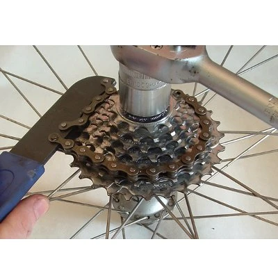 Pour démonter votre cassette vous aurez besoin également d’un démonte cassette, et pour démonter votre roue libre d’un démonte roue libre. D’une main, vous tenez le fouet à chaine en bloquant la rotation de la cassette/roue libre tandis que l’autre main tient le démonte cassette/roue libre en tournant pour dévisser la pièce.