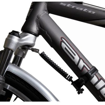 Ce redresseur de guidon est spécialement conçu pour les vélos à fourche suspendue, équipés d’une béquille double centrale. Il permet d’éviter que la roue ne tourne, une fois le vélo garé. La roue avant reste donc droite, dans l’axe du cadre.