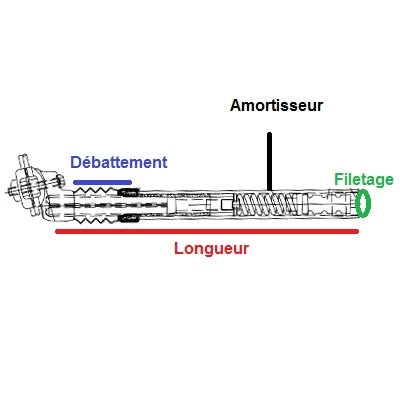 La longueur de la tige est de 300 mm et le débattement de 40 mm. Il est possible de régler la pré-charge de cette tige de selle de vélo grâce à un filetage accessible par le dessous de la tige.